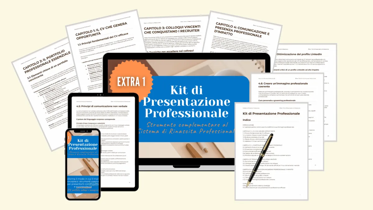 I risultati ottenuti dalle persone che hanno applicato il metodo del Sistema di Rinascita Professionale non sono garantiti. Ogni percorso di cambiamento professionale è unico, richiede impegno e costanza, e può portare a risultati diversi in base alla situazione di partenza, alle scelte personali e a fattori esterni. I contenuti condivisi non rappresentano promesse di successo o guadagno facile. Se stai cercando scorciatoie o formule magiche, questo percorso probabilmente non fa per te.